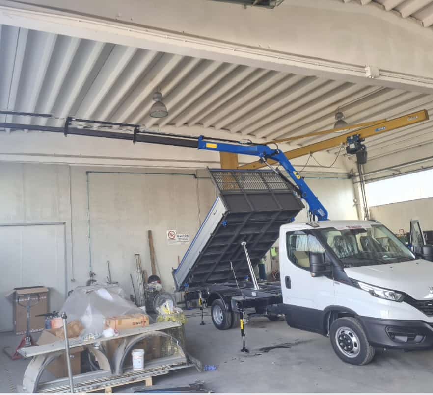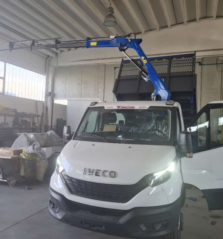 3.000 cc, 150 cv, 6 marce, in allestimento con gru DN 4.0 4 sfili e ribaltabile trilaterale 3200x2100x400